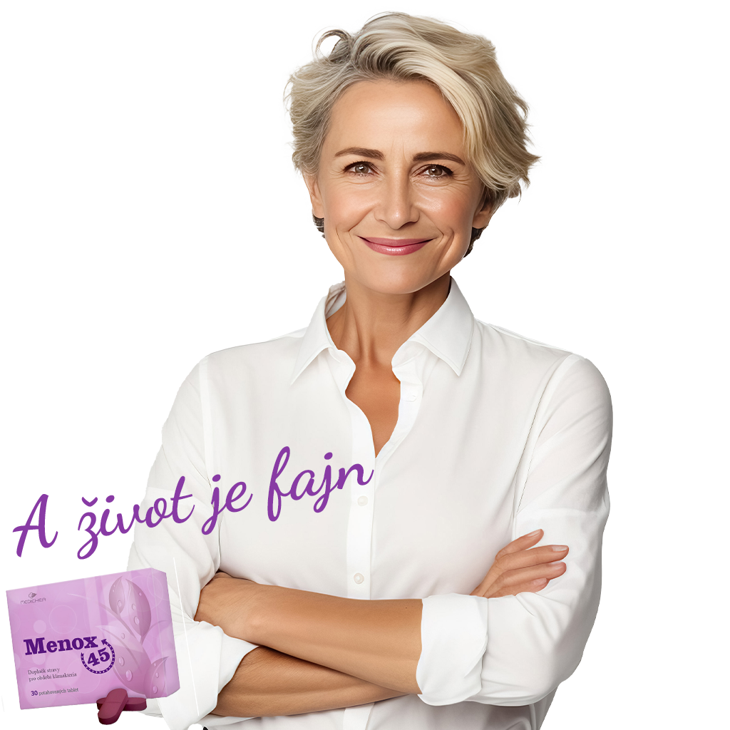 Užívam Menox 45 už 3 mesiace a musím Vám popísať bezva účinky. Trpela som veľkými návalmi tepla a niektorými ďalšími vplyvmi menopauzy. Vaše webové stránky som potom objavila náhodou. Odvtedy, čo užívam Menox 45, všetky moje problémy takmer zmizli. Neviem, či to má vplyv, ale môj partnerský život sa tiež zlepšil.